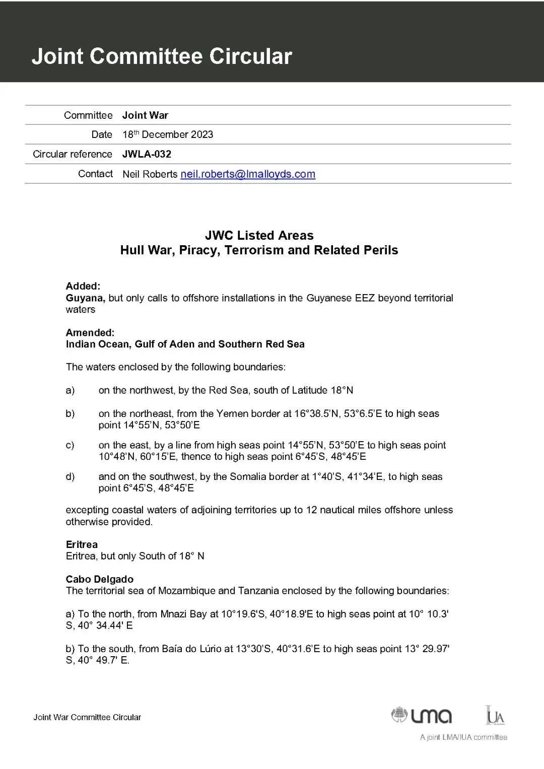 據央視新聞最新消息,當地時間12月18日下午,也門胡塞武裝發表聲明稱,胡塞武裝對兩艘同以色列相關的、航行在紅海的貨輪采取了軍事行動。 一艘是名為“大西洋天鵝”號的油輪,一艘是名為“MSC Clara”號的集裝箱貨輪。 也門胡塞武裝表示,襲擊是在兩艘船的船員拒絕服從該組織的命令后進行的。 胡塞武裝在聲明中還表示,將繼續禁止紅海上任何國籍的船只前往以色列港口,直到允許將食品、藥品等物資運入加沙地帶。胡塞武裝還表示,他們不會針對任何同以色列無關的、在紅海正常航行的他國船只。 據悉,“大西洋天鵝”號屬于一家挪威的公司,其船東 Inventor Chemical Tankers 表示,該船被不明物體擊中,但沒有船員受傷,同時還強調其與以色列沒有任何關系。 而“MSC Clara”號懸掛巴拿馬國旗,IMO:9708693,船長395米,運力19,244TEU,近期曾掛靠上海、寧波和深圳蛇口等多個國內重要港口。目前尚不清楚該船遭到襲擊的細節。 據不完全統計,截至目前,在紅海水域遭遇胡塞武裝襲擊的船舶已達18艘。 截至12月19日下午,全球運力排名前10的集裝箱班輪公司,都宣布暫停紅海航線通行或者暫停接受貨物訂艙! 目前,MSC、馬士基、達飛、赫伯羅特都已經宣布暫停穿越曼德海峽,中遠海運旗下的東方海外宣布暫停接收往返以色列的貨物,以色列班輪公司以星已經宣布繞行。 HMM因一艘貨船遇襲也暫停紅海航線;陽明海運也加入停航行列;長榮海運已口頭通知暫停紅海航線貨物的接載;ONE也口頭通知暫停紅海航線的貨物接載。 同時,據臺媒報道,萬海航運也表示:暫停紅海航行、改道好望角。 萬海宣布,基于船舶、船員及船上貨物安全考察,即日起暫停通行紅海。紅海區域航線的船舶將航行至周邊安全水域等候通知,視后續情勢發展調整計劃。而亞洲往返美國東岸航線原訂通行紅海的船舶,將改道繞行非洲南端的好望角至目的港。 目前宣布紅海停航/停收的船公司合計運力占全球總運力的85.9%。 有相關統計顯示,已有超過100艘集裝箱船為了避免穿越紅海的風險,延誤推遲或改變航線。 另據央視財經報道:當地時間18日,英國、德國、挪威、比利時等國的多家石油公司和船運公司宣布暫停經過紅海的運輸、航行。 石油巨頭英國石油公司BP表示,鑒于紅海航運安全形勢不斷惡化,該公司宣布暫停其所有經紅海的油輪運輸。 歐洲油氣巨頭挪威國家石油公司Equinor以及挪威和比利時的幾家船運公司也宣布旗下船只將避開在紅海和亞丁灣的航線。 分析人士指出,如果其他大型石油公司效仿,油價可能會上漲。 近期,紅海緊張局勢加劇,紅海、曼德海峽及附近海域的船只遇襲事件頻頻發生,各大船公司陸續宣布暫停其集裝箱船只在紅海及附近海域航行,繞道好望角等,將對全球供應鏈將產生極大影響。 據維運網統計,當前共有136艘集裝箱船可能受到影響,查詢網址如下: https://www.weiyun001.com/route/redsea 值得注意的是,美國國防部長勞埃德·奧斯汀宣布將采取“多國聯合護航行動”以保護紅海貿易。參與國將在南紅海和亞丁灣進行聯合巡邏。 參與該行動的國家包括英國、巴林、加拿大、法國、意大利、荷蘭、挪威、塞舌爾和西班牙。 隨后,當地時間19日,胡塞武裝領導人之一、胡塞武裝最高政治委員會成員穆罕默德對外表示,美國試圖同胡塞武裝建立渠道進行溝通,但胡塞武裝拒絕同美國溝通,并表示“同美國溝通讓我們臉上無光”。 另一名也門胡塞武裝高級官員當天也表示,針對紅海航行船只的襲擊不會停止。 有媒體消息進一步顯示,由于商船遭受的襲擊增加,倫敦的海上保險市場擴大了紅海的高風險區。 倫敦保險市場已將紅海南部水域列為高風險區域。聯合戰爭委員會(Joint War Committee)于2023年12月18日發布最新版通函JWAL-032,宣布將Guyana列為戰爭險除外區域,同時將印度洋、亞丁灣和紅海南部的戰爭險除外區域范圍做如下更新: